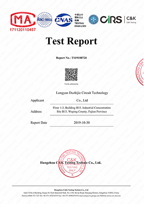 工廠搭建了ISO-9001、T/S16949、ISO14001的管理體系并通過認(rèn)證,產(chǎn)品符合CQC、UL、IPC、RoHS等